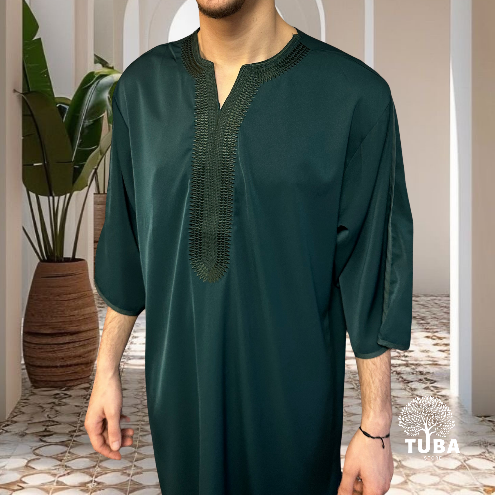 Jalabiya/Djellaba/Thobe feiner Stoff - Smaragdgrün